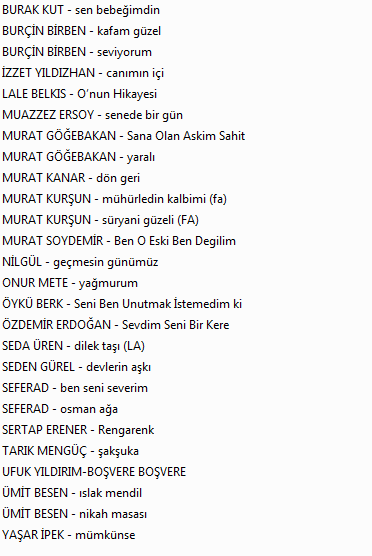 Karışık altyapılar bölüm 6 tek link indir 17 Kasım 2015 | By admin | Filed in: Keyfi Müzik Güncel. KARIŞIK ALTYAPILAR BÖLÜM 6.rar « Karışık altyapılar bölüm 5 tek link indir ANAM.-iBRAHiM TATLISES » Bir yanıt yazınYorum yapabilmek için oturum açmalısınız.